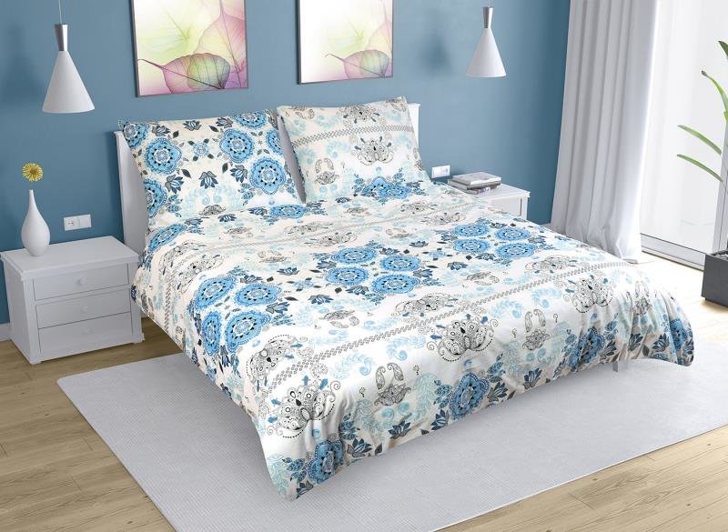 Povlečení bavlna na dvoudeku - tyrkysový ornament - 1x 200x220, 2ks 70x90 cm (200 cm šířka x 220 cm délka prodloužená)
