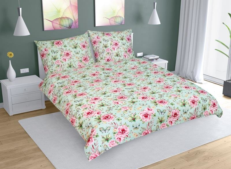 Povlečení bavlna na dvoudeku - sv.zelená louka - 1x 240x200, 2ks 70x90 cm (240 cm šířka x 200 cm délka)