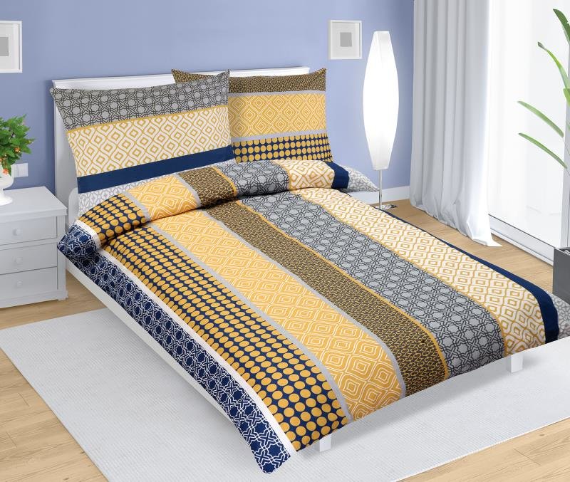 Povlečení bavlněné - pruhy modrožluté - 140x200, 70x90