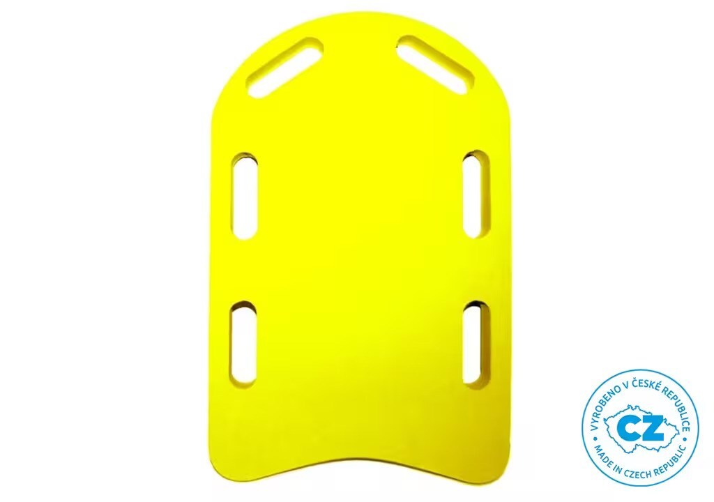 Plavecká deska pro výcvik plavání ve žluté barvě nabízí snadný úchop oběma rukama díky několika otvorům.