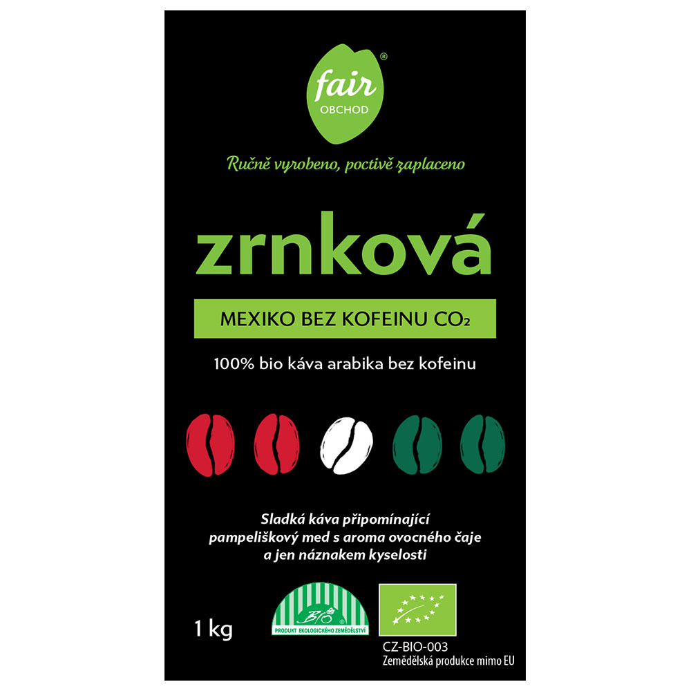 Fairobchod Bio zrnková káva Mexiko bez kofeinu CO2, 1 000 g