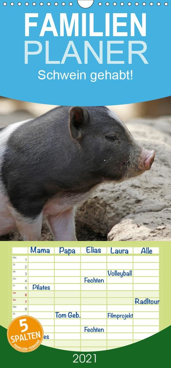 Schwein gehabt! - Familienplaner hoch (Wandkalender 2021 , 21 cm x 45 cm, hoch) (německy)