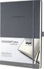 Exkluzivní vysoce kvalitní zápisník Conceptum je uzavíratelný na gumičku, vybavený dvěma záložkami, poutkem na pero a praktickou kapsou na zadní straně. Očíslované strany, posledních 20 stran je perforovaných.