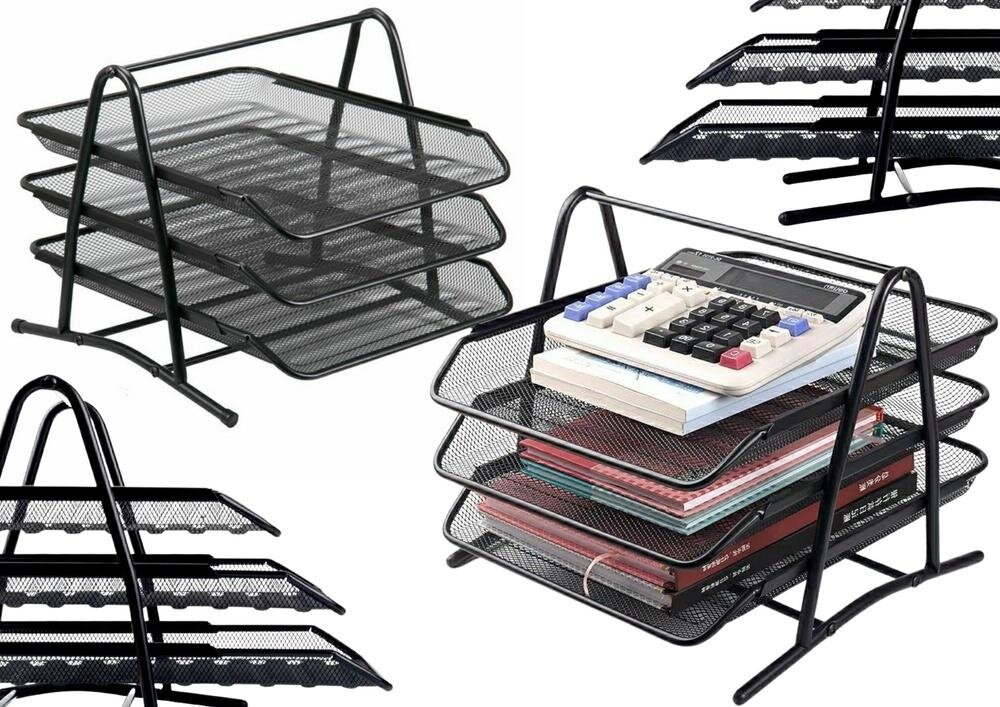Organizer 3 Wysuwane Szuflady Metal Czarny Praktyczne i Estetyczne Rozwiązanie dla Twojego Biurka Organizer na dokumenty to idealne rozwiązanie do uporządkowania przestrzeni biurowej. Wykonany z metalowej siatki pokrytej eleganckim czarnym lakierem, łączy w sobie trwałość z nowoczesnym designem,...