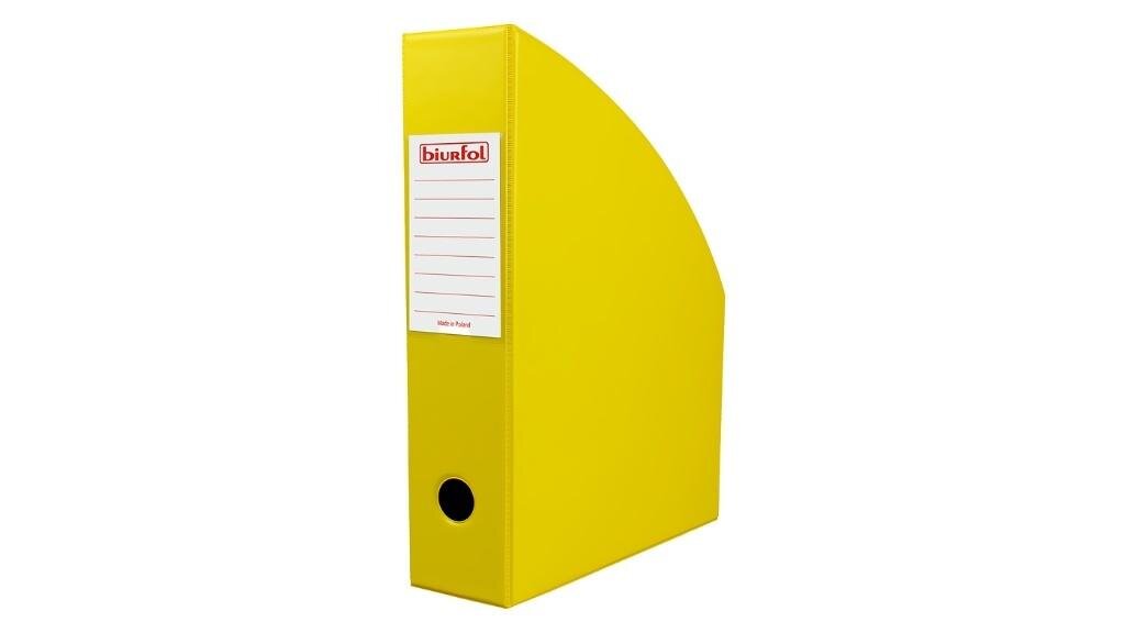 Wykonany z kolorowej folii PVC, wewnątrz usztywniony tekturą. Format A4 o ściętych bokach. Wyposażony w kieszonkę z wymienną etykietą opisową na grzbiecie. Okrągłe wycięcie na palec pozwalające na łatwe wysuwanie pojemnika. Szerokość grzbietu 7 cm. prečítať celé