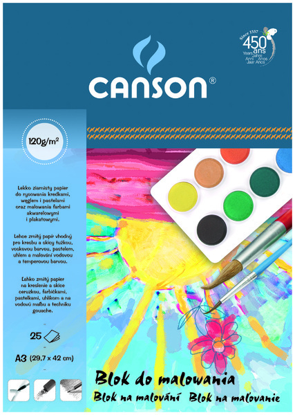 Wysokiej jakości bloki szkolne canson. Śnieżnobiały papier o mięsistej powierzchni ułatwiającej zatrzymywanie kredki, odporny na wymazywanie, z kolei w kolorowych blokach - papier w intensywnych kolorach, barwiony w masie. Przeznaczone do szkiców i rysunku ołówkiem, kredkami, pastelami, prac manualnych itp.