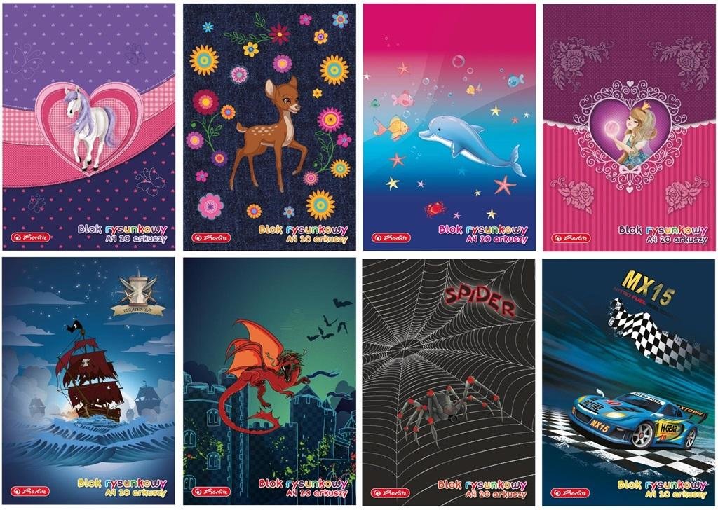 Blok rysunkowy biały A4, 20 arkuszy. Gramatura 80g. Mix wzorów- motywy dziewczęce i chłopięce. 10 sztuk w opakowaniu zbiorczym. prečítať celé