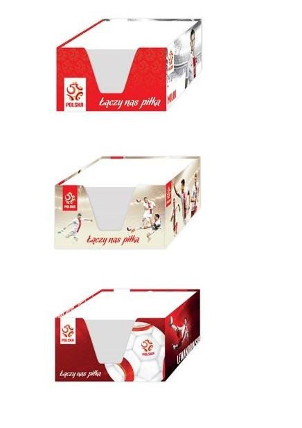 Kostka papierow abiała w kubiku kartonowym z wzorem PZPN. Mix wzorów, wzór wysyłany losowo. prečítať celé