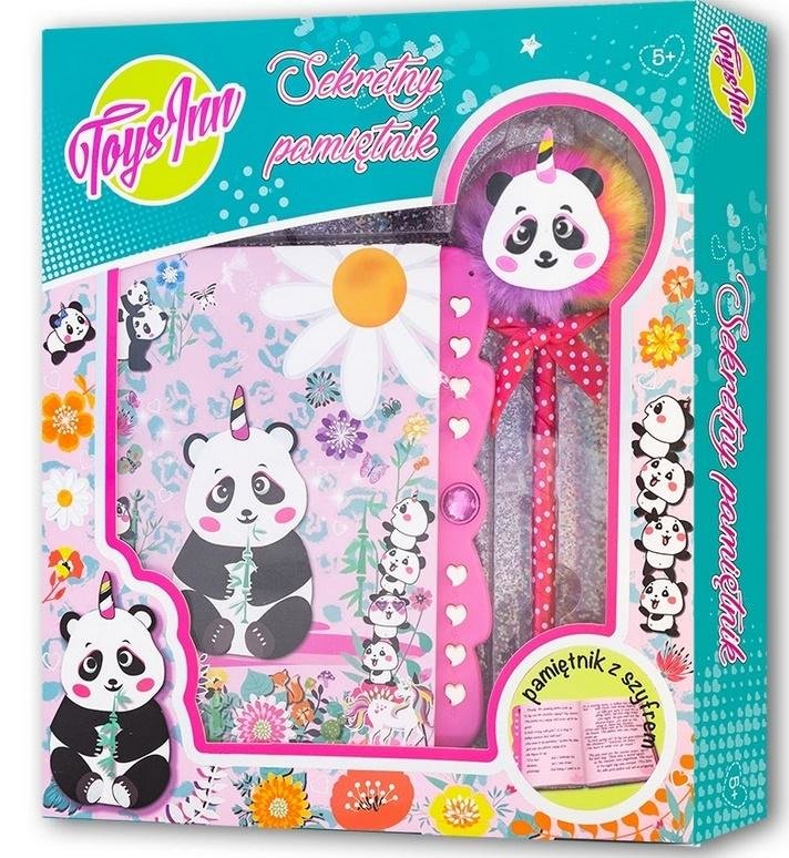 Najlepszy sposób na zachowanie Twoich sekretów, to zapisanie ich w pamiętniku z zamkiem szyfrowym. Pamiętnik o wymiarach 13,5x15x1,5 cm, jest w twardej oprawie, posiada modny wzór pandy oraz strony w linie, z miejscem na datę i pogodę. Do zestawu dołączony jest długopis piszacy czarnym kolorem, zakończony "pomponem-pandą". Produkt detykowany jest dla dzieci w wieku 5+.
