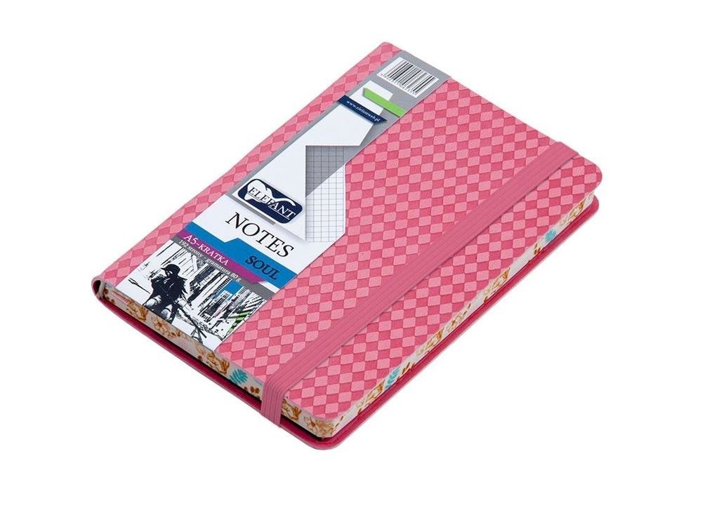 Cechy produktuwymiar: 21.0 x 14.5 cm,papier: delikatne chamois 80 g,ilość stron: 192 strony w kratkę,zaokrąglone narożniki opraw i stron,gumka spinająca notes,elastyczny uchwyt na długopis,tasiemka w kolorze okładki,koperta na odwrocie okładki,wysokiej jakości twarda okładka.