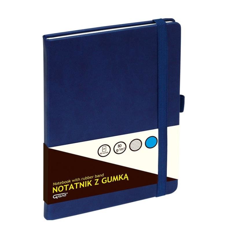 NotatnikA5/80K linia z gumką granatowy GRAND