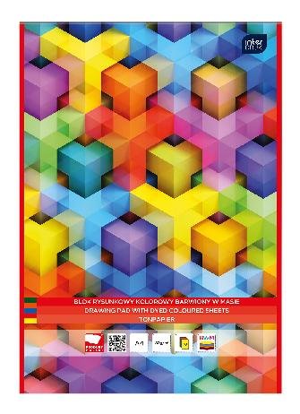 Blok rysunkowy A4/10K kolorowy barwiony w masie10 sztuk w opakowaniu zbiorczym, różne wzory prečítať celé