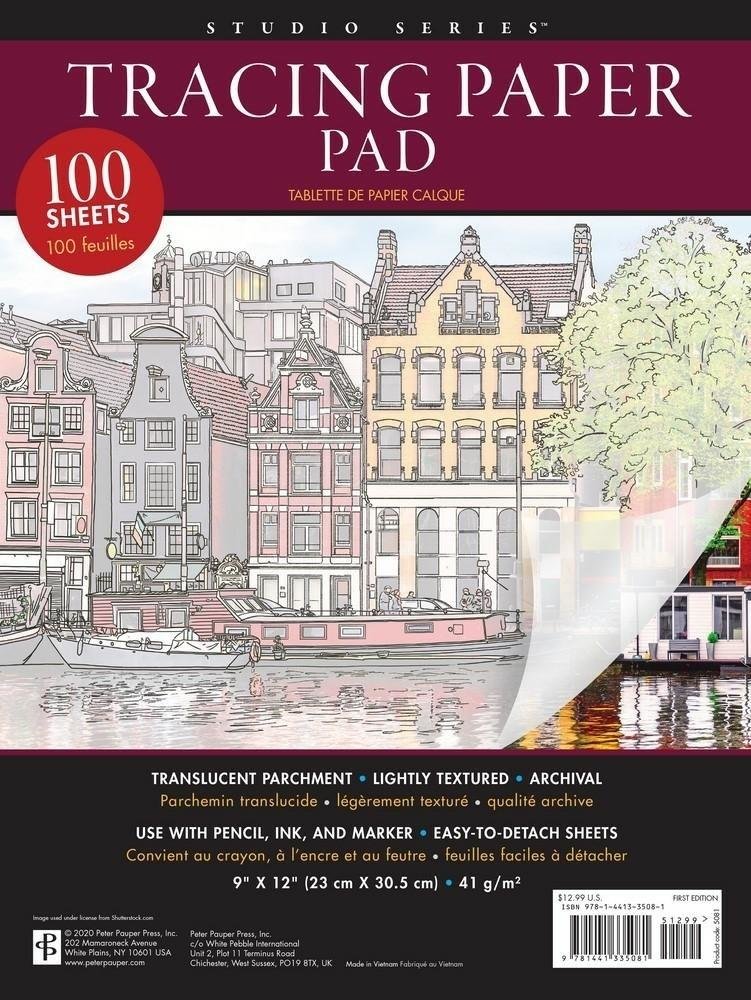 Kalka kreślarska marki Peter Pauper Press. Idealna do rysowania i wizualizacji przy użyciu ołówków, markerów lub tuszu. W opakowaniu jest 100 arkuszy półprzezroczystego bezkwasowego pergaminu 41g/m2 , o delikatnej teksturze, z którego można zgumkować ołówek. Kartki z łatwością można oderwać.