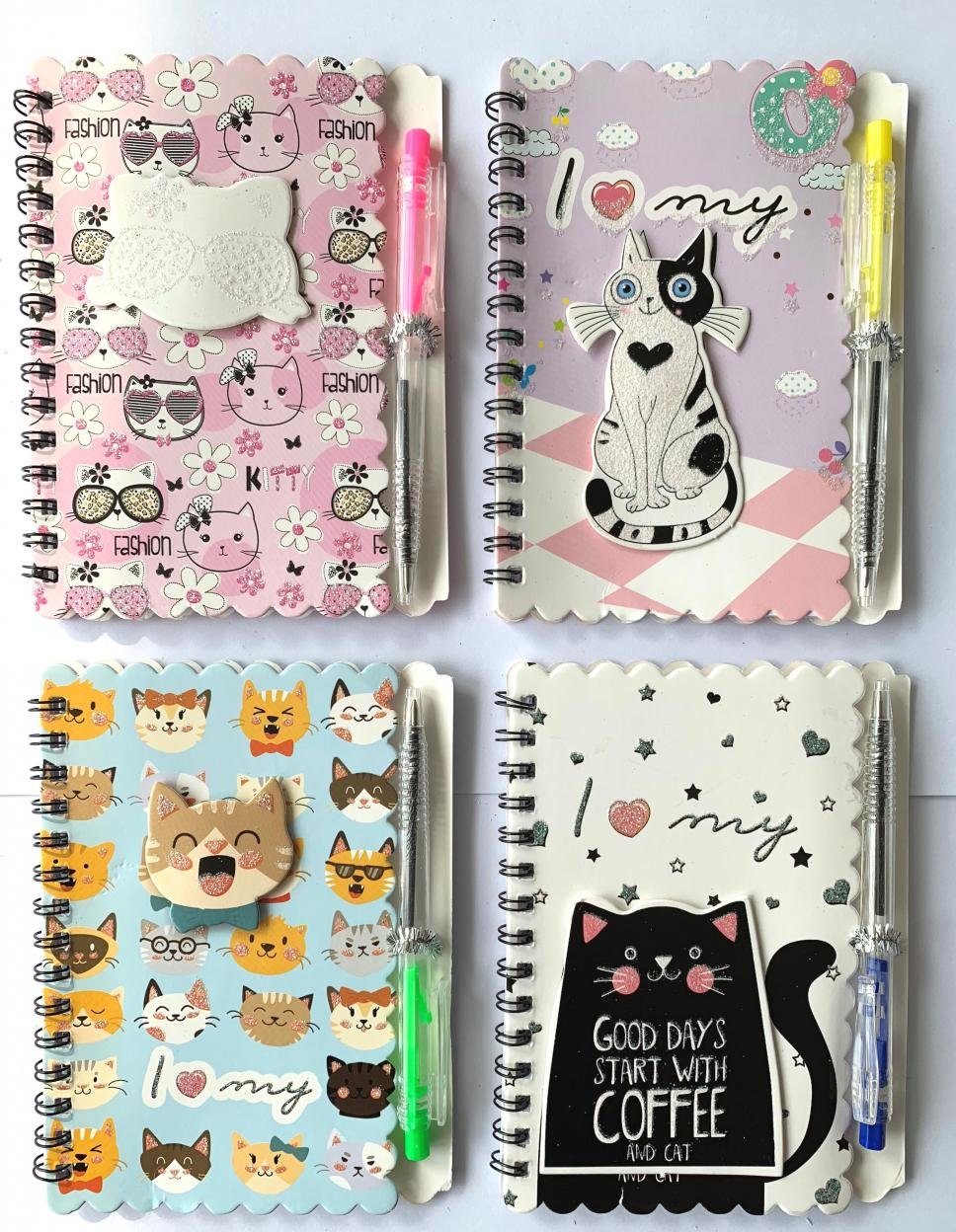 Notes na spirali z nadrukiem kotków. Do notesu dodany jest dodatkowo długopis. Ilość kartek:30 Rozmiar:140 x 103 mmTowar wysyłany losowo prečítať celé