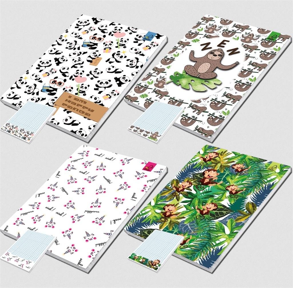 Opakowanie zbiorcze 10 sztuk. opakowanie mix wzorów 10szt. Notes formatu A6 50 kartek w kratkę klejony kartki wyrywane środki z nadrukiem na dole strony dla przedszkolaka i ucznia kolorowe dziecięce wzory dla dziewczynki i chłopczyka kolory przedstawione na zdjęciu mogą nie...