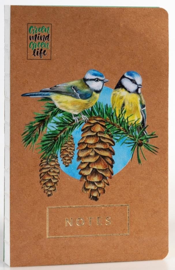 Gustowny notes ekologiczny Green Life. Notatnik z tekturową okładką pochodzącą z recyklingu i okładkową ilustracją sikorek w gnieździe.Szyty notes otwiera się na płasko, a odkryty grzbiet uwydatnia wyjątkową, japońską technikę szycia introligatorskiego. Gwarantuje ona lekkość i atrakcyjny wygląd...