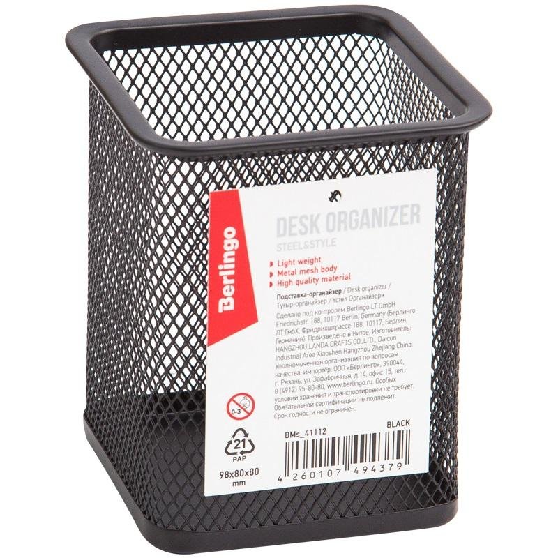 Pojemnik kwadratowy na długopisy "Steel & Style". Wymiar 98mm x 80mm x 80mm. Stylowy i praktyczny metalowy stojak-organizator Berlingo Steel & Style przeznaczony jest do przechowywania długopisów oraz innych artykułów biurowych. Wytrzymała obudowa produktu wykonana jest z wysokiej jakości...