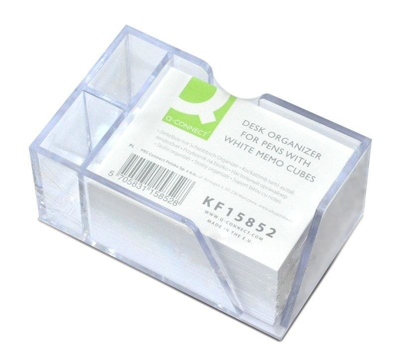 przybornik na biurko, wykonany z bardzo sztywnego i odpornego na pęknięcia tworzywa sztucznego o grubości 3,5mm z trzema komorami oraz dwoma wycięciami: narożnym, ułatwiającym wymianę wkładu oraz wzdłuż dłuższego boku umożliwiającym sięganie po nowe karteczki posiada dwie komory na...