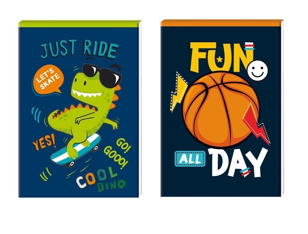 Opakowanie zbiorcze.Notes A7 posiada 30 kartek z kolorowym poddrukiem. Grzbiet klejony po krótszym boku. Charakteryzuje się estetycznym wykończeniem i modną z motywem dla chłopców prečítať celé