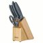 - 1x nôž na ovocie/zeleninu 7,5 cm- 1x nôž na steaky 13 cm- 1x kuchársky nôž 15 cm- 1x šéfkuchársky nôž 18 cm- 1x nožnice - drevený stojan