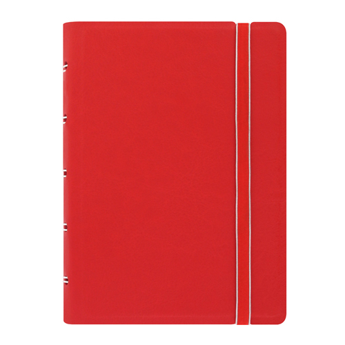 Poznámkový blok kapesní, v kroužkové vazbě, který umožňuje vybrat a opětovně vrátit listy a ohnout desky o 360 °. Blok obsahuje 56 linkovaných listů, oddělených 4 barevnými rozdělovníky (jeden s kapsou) a pravítko, které slouží i jako záložka. Praktické uzavírání gumovým páskem v barvě desek. Vyhotovené ze syntetické kůže, příjemné na dotek.
