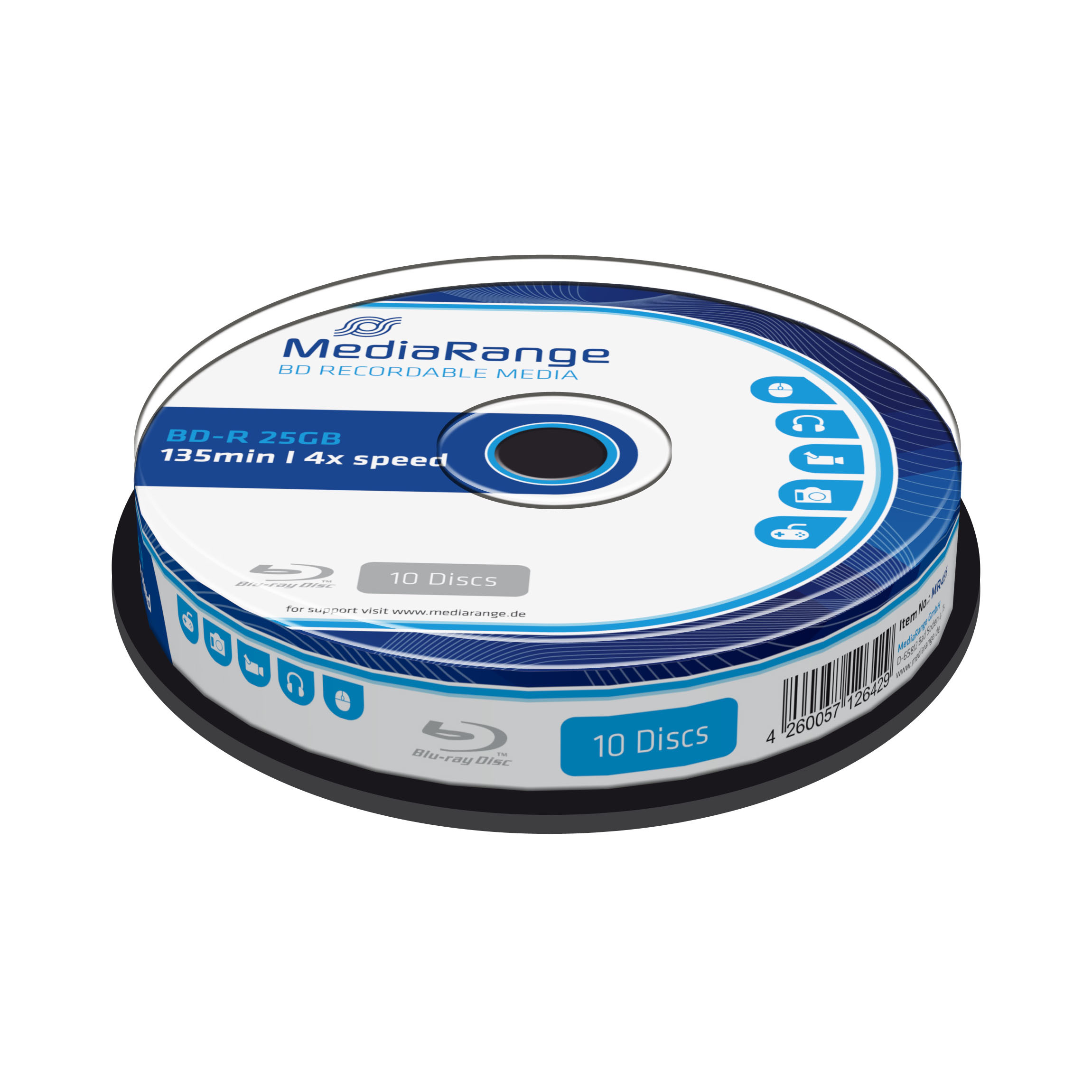 Kvalitní a cenově dostupná média BD-R značky MediaRange poskytují spolehlivý zápis dat s kapacitou až 25 GB při maximální rychlosti zápisu až 4x. Média jsou balena po 10 kusech ve spindlu.