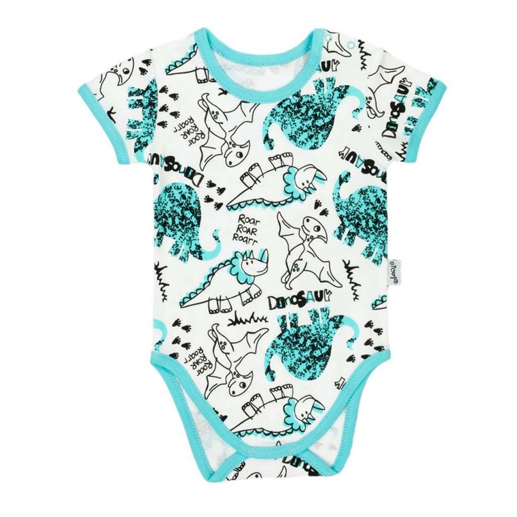 Kojenecké body s krátkým rukávem Nicol Dinosaur pro miminka. Body zdobí potisk dinosaurů. Zapínání na cvočky na ramínku a mezi nožičkama usnadňuje oblékání a přebalování. Body je pro miminka důležitým kouskem oblečení. Při jakémkoliv pohybu jsou zádička miminka stále přikrytá. Dinosaur je nová...