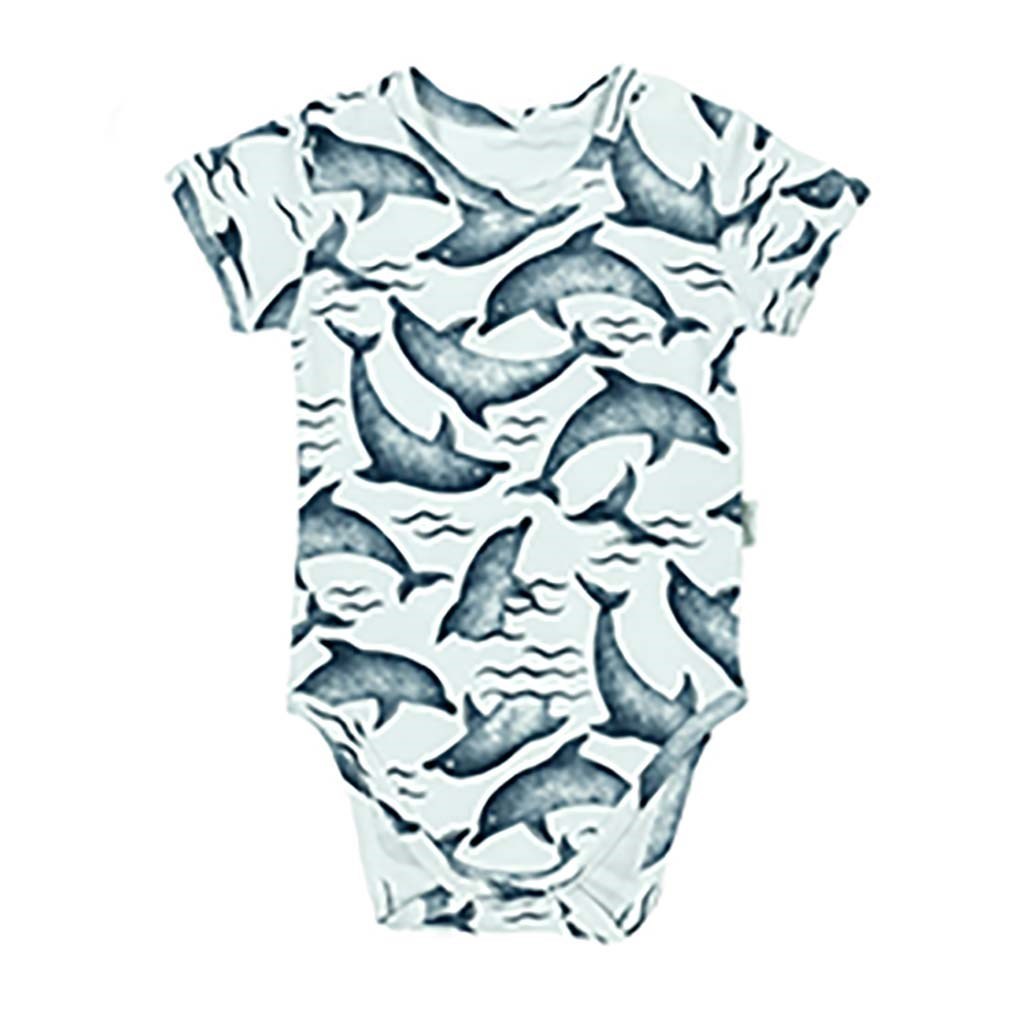Nápadité bavlněné kojenecké body s krátkým rukávem Nicol Dolphin pro miminka. Body zdobí potisk delfínů. Zapínání na cvočky na ramínku a mezi nožičkama usnadňuje oblékání a přebalování. Body je pro miminka důležitým kouskem oblečení. Při jakémkoliv pohybu jsou zádička miminka stále přikrytá....