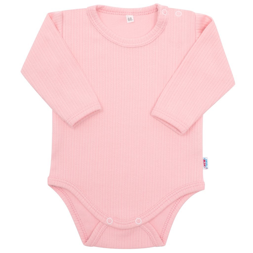 Krásné kojenecké body české značky New Baby Sweetie. Body je jednobarevné s novým atraktivním vzorem látky s proužky a ažurem. Zapíná se na cvočky na ramínku a mezi nožičkama, což usnadňuje oblékání a přebalování. Body je vyrobeno z příjemného a kvalitního materiálu, ve kterém se miminko bude cítit velmi pohodlně. Složení: 100% bavlna.