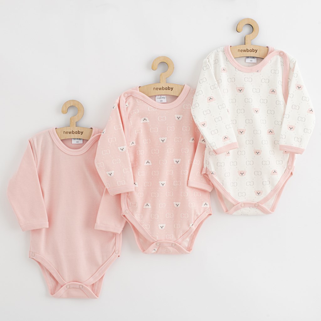 Kojenecké celorozepínací body New Baby Classic II Holka 3ks růžová - velikost 62 (3-6m)