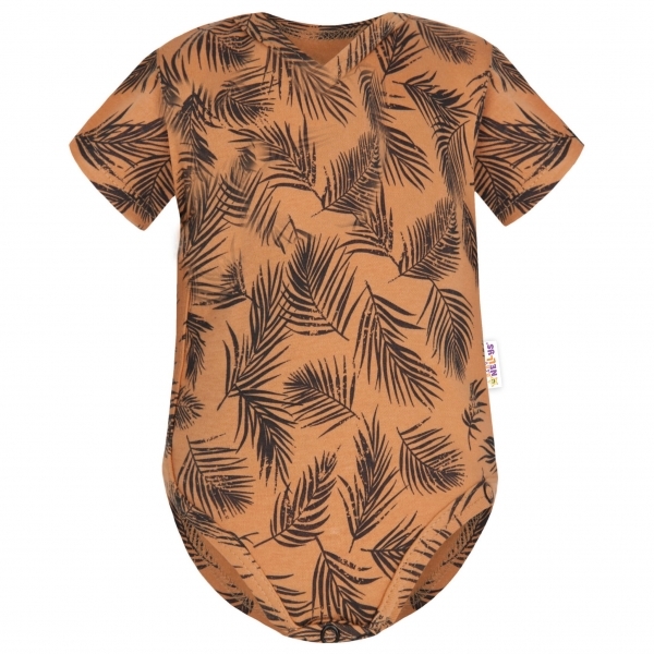 Baby Nellys Bavlněné body krátký rukáv, Palmy - medové, vel. 80; 80 (9-12m)