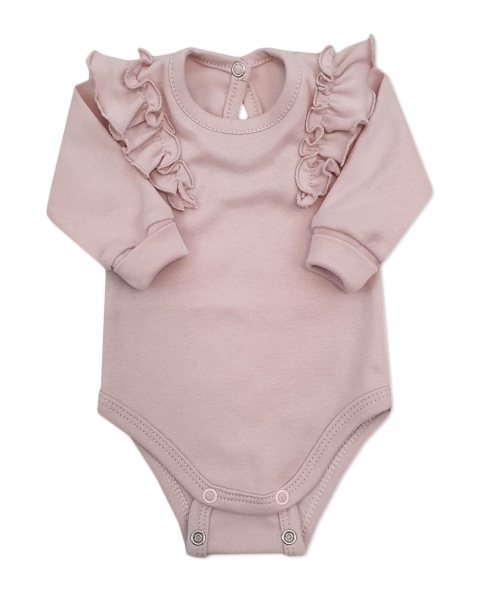 Rostoucí body dlouhý rukáv s volánky, bavlna, starorůžová, vel. 80/86; 80/86 (12-18m)