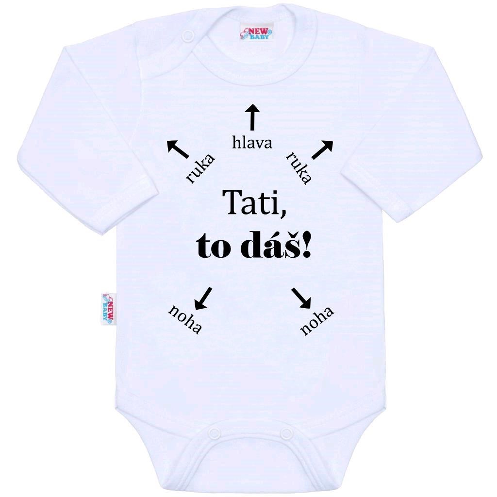 Originální bavlněné kojenecké body s dlouhým rukávem New Baby, s vtipným nápisem Tati, to dáš! Barvy použité k potisku jsou certifikované a vhodné pro miminka. Je vyrobeno z příjemného a kvalitního materiálu, ve kterém se bude Vaše miminko cítit příjemně. Body má zapínáni na cvočky na ramínku a...