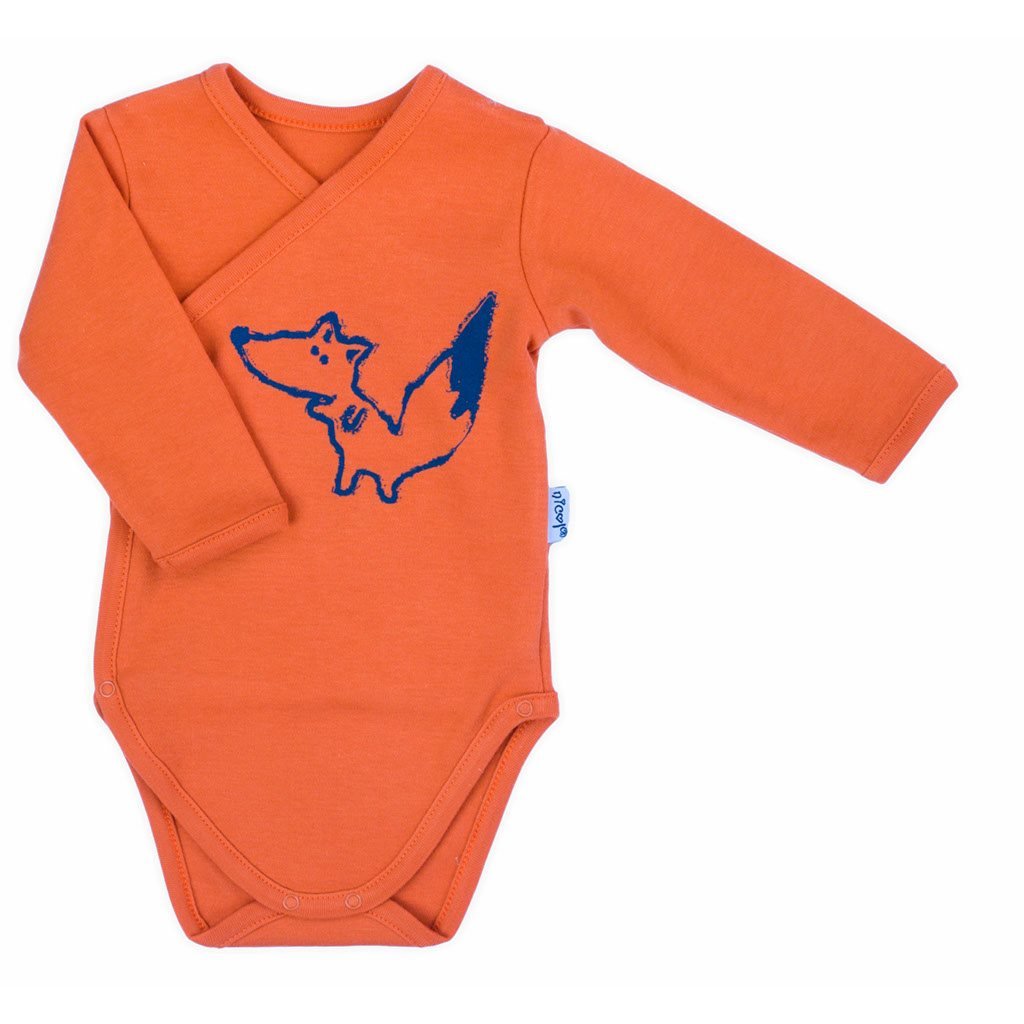 Kojenecké bavlněné body s bočním zapínáním Nicol Fox Club oranžové - velikost 62 (3-6m)