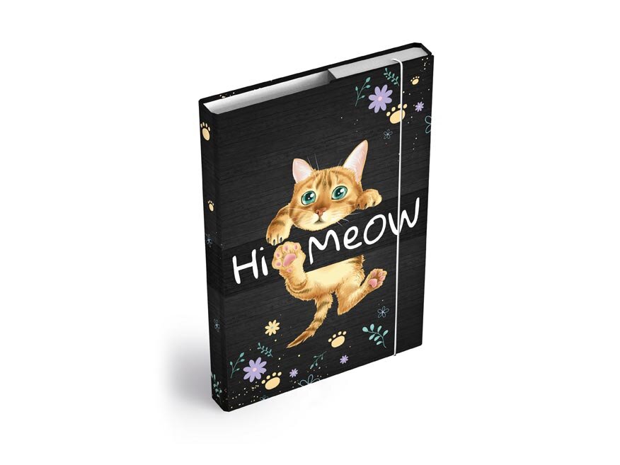Školní desky na sešity ve velikosti A4 s motivem kotěte. Nezbytná součást vybavení každého školáka. Díky školním deskám budou všechny sešity a učebnice pohromadě a neponičené. Tyto desky na sešity jsou opatřeny gumou, která zabraňuje samovolnému otevření. Heft box je vyroben z kvalitního lepenkového kartonu, potaženého laminem. Z tohoto důvodu se dá velice lehce udržovat.