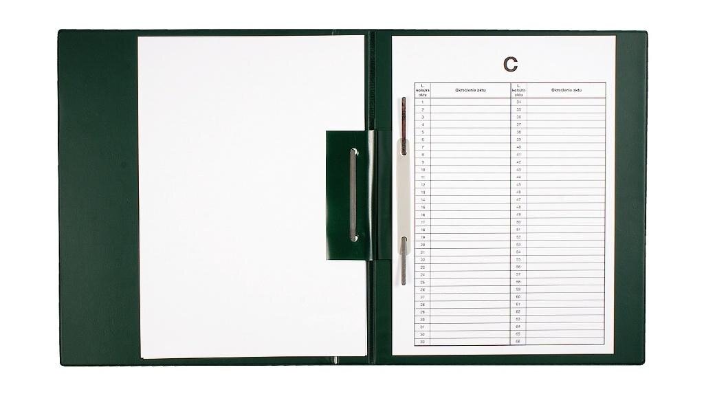Teczka wykonana z wytrzymałej folii PVC, wewnątrz usztywniona tekturą. Wewnątrz zamontowano mechanizmy skoroszytowe umożliwiające wpięcie dokumentów. Wyposażona w uniwersalne, papierowe przekładki A, B, C, D, E bez opisu kategorii. Grzbiet o szerokości 3 cm. Na grzbiecie kieszeń z etykietą do...