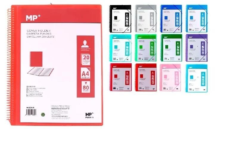 Teczka ofertowa wykonana z przezroczystego polipropylenu z oprawą spiralną. Zapięcie na gumki w kolorze teczki. Do dokumentów A4. Wymiary folderu:320 x 240 mm. Przezroczyste kieszenie do prezentacji dokumentów i ofert. Wewnątrz znajduje się polipropylenowa teczka na koperty z wieloma otworami z zapięciem na guzik do przechowywania załączników.20 kieszeni. 12 różnych kolorów.
