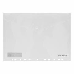 Teczka kopertowa transparentna wykonana z polipropylenu,zamykana na zatrzask, pozioma w formacie A4 z europerforacją ułatwiającą wpięcie do segregatora z dowolnym ringiem, wcięcie ułatwia wkładanie/wyciąganie dokumentów. Praktyczna teczka kopertowa z kolekcji STARPAK. Teczka pomieści wszystkie dokumenty w formacie A4.