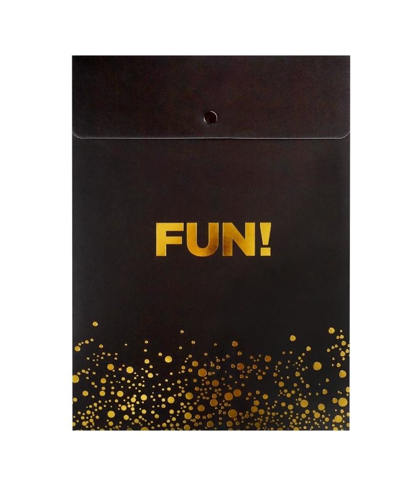 Fotmat A4.Zamykana na zatrzask.Kolor czarny.Ozdobiona złotymi kropkami i napisem "FUN!". prečítať celé