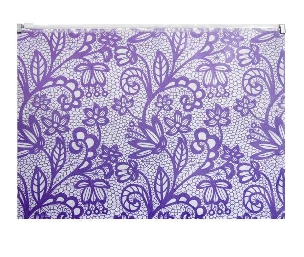 Teczka w formacie A5 z nadrukiem w fioletowe kwiaty oraz z zapięciem strunowym. prečítať celé