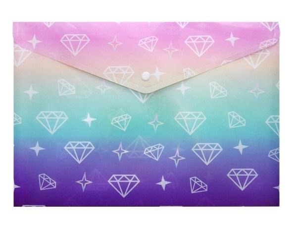 Tęczowa teczka w formacie A5 z motywem diamentów. Zapinana na zatrzask. prečítať celé