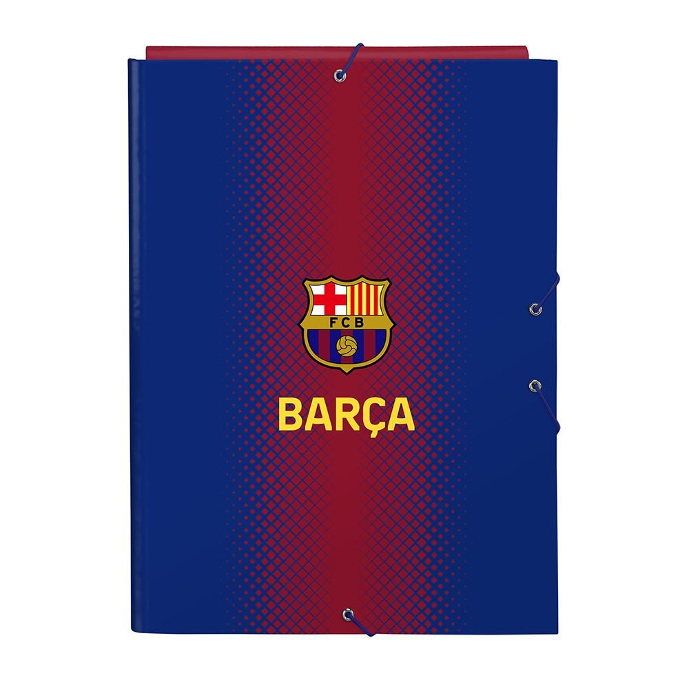 Složka na sešity ve velikosti A4, se třemi klopami a stahovací gumou. Složka v barvách a se znakem klubu FC Barcelona.