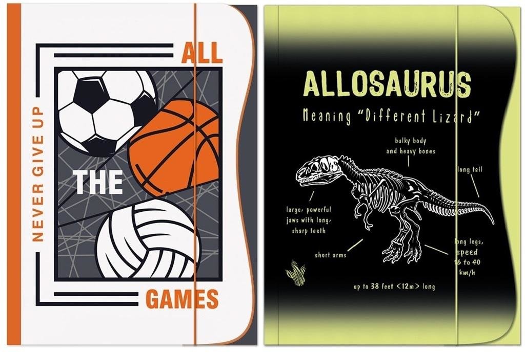 Mix wzorów, towar wysyłany losowo.Teczka formatu A4 wykonana z grubego papieru. Zadrukowana z zewnatrz oraz wewnątrz. Wyposażona w gumkę wzdłuż długiego boku. Posiada trzy wewnętrzne klapki zabezpieczające dokumenty przed wypadnięciem. Przednia część teczki wycięta w fantazyjny kształt. Motyw dla...
