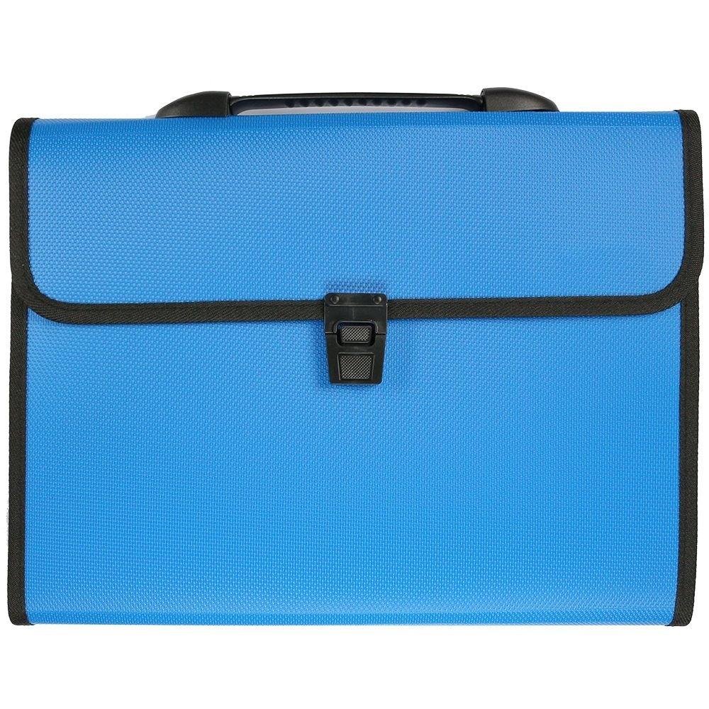 Teczka PP A4/12 przegród z rączkązamykana na zamek,tłoczona fakturakolor niebieskiobszyta lamówką w kolorze czarnym prečítať celé