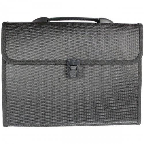 Teczka PP A4/12 przegród z rączkązamykana na zamek,tłoczona fakturakolor czarnyobszyta lamówką w kolorze czarnym prečítať celé
