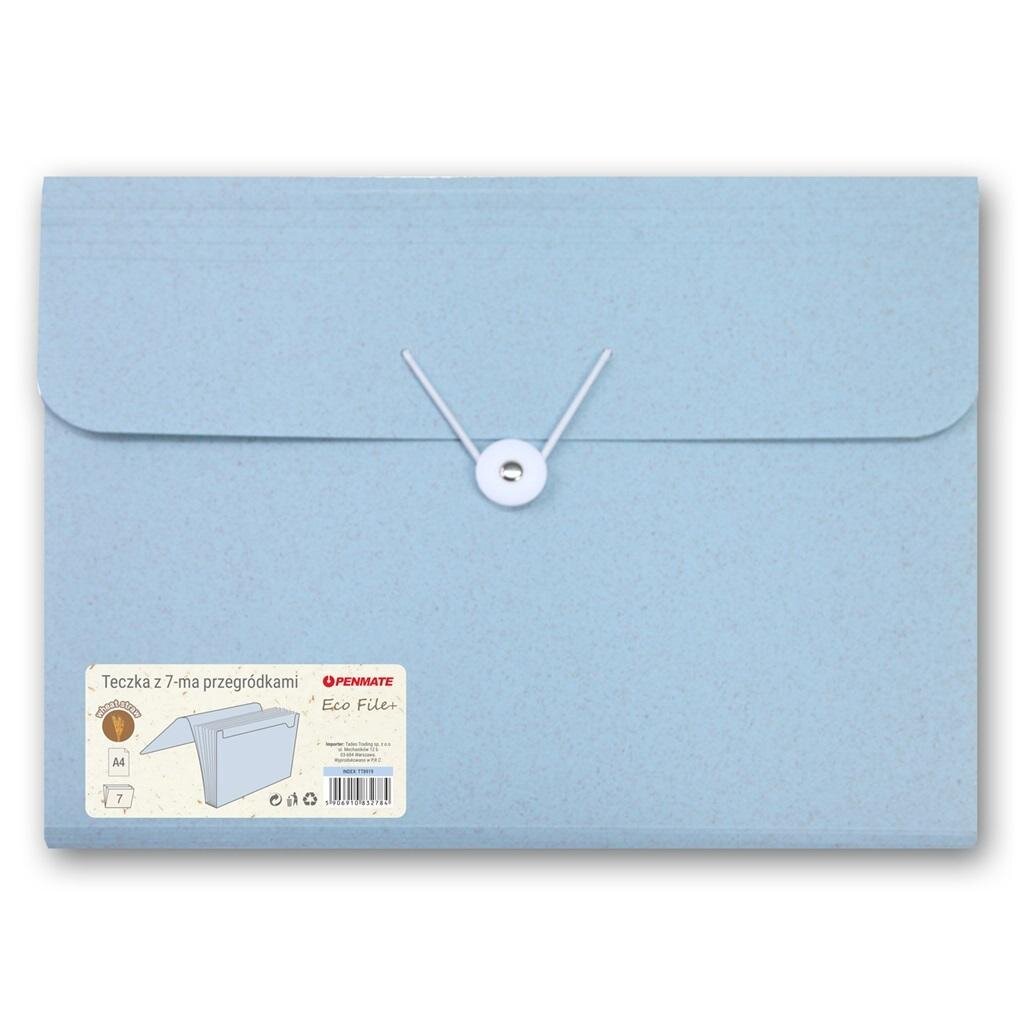 pszenicznej. Kreatywny, nowy materiał ma właściwości i zalety podobne do tradycyjnych tworzyw sztucznych. Grubość tworzywa na zewnątrz 0,6 mm, wewnątrz kolorowe przegródki o grubości 0,15 mm wykonane również z materiału zawierającego słomę pszeniczną. Wymiary: 235x325x30 mm. Teczka pakowana pojedynczo w woreczek foliowy.