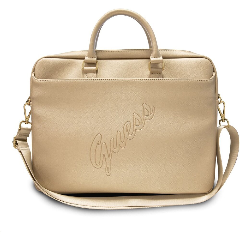 Guess PU Saffiano Vintage Script brašna pro 15/16" Macbook/notebook zlatá