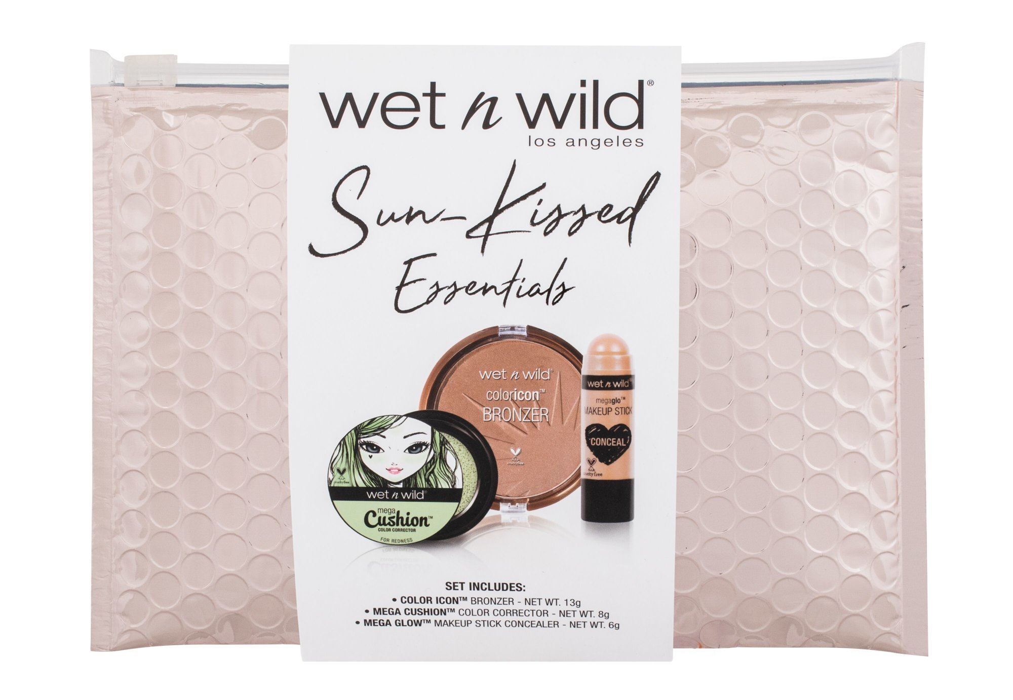 Wet n Wild Sun-Kissed Essentials korektor Mega Cushion 8 g + bronzer Color Icon 13 g Ticket to Brazil + korektor Mega Glo 6 g Follow Your Bisque + kosmetická taštička