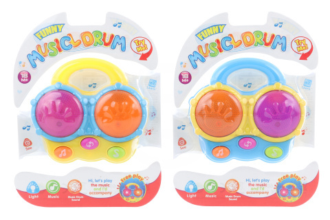 Plastové bubínky pro nejmenší. Po zmáčknutí tlačítek svítí a vydávají zvuky. Napájení na 2 AAA baterie (jsou součátí balení). Rozměry bubínků cca 12 x 10,5 x 4 cm. Rozměry balení cca 17 x 22 x 4 cm. Věk 18m+ prečítať celé