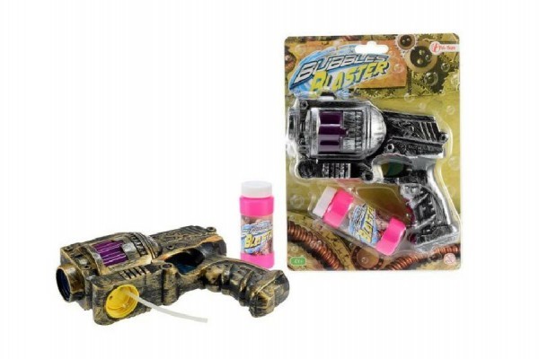 Pistole bublifuk plast 17cm + náplň na baterie se světlem se zvukem na kartě
